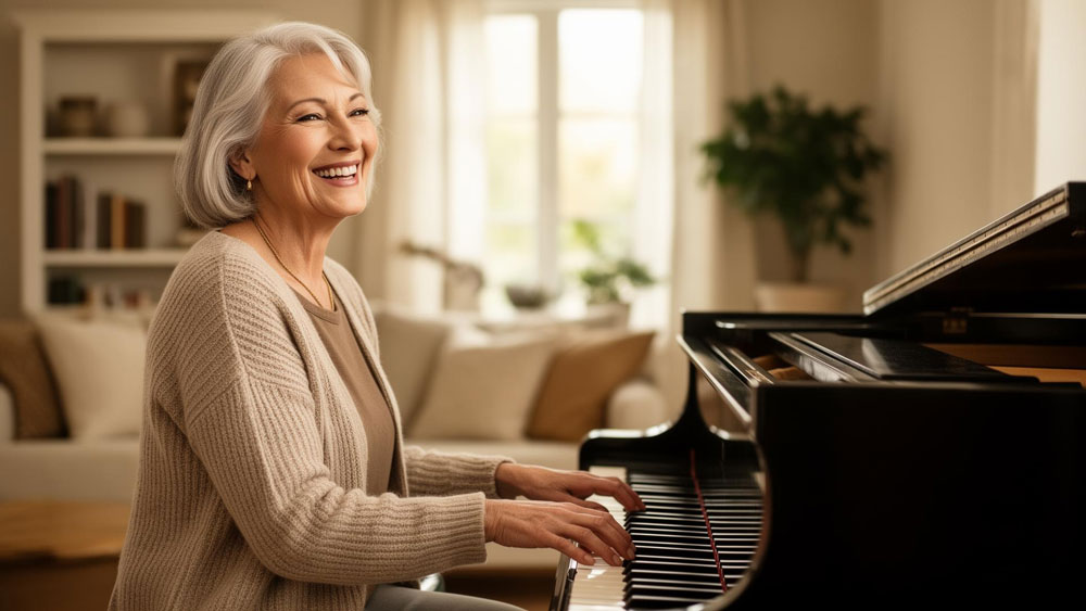 Nos élèves ont 55 ans en moyenne — il n’est jamais trop tard. Certains ont commencé à 70 ans. Le piano n’a pas d’âge. La seule chose qui compte, c’est ton envie.